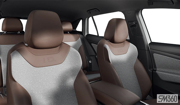 - Mélange seats: cloth (stain-repellant) and leatherette with "ID." insignia in seatback